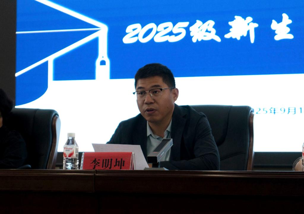 会议伊始,党总支书记李明坤代表学院向全体2025级新生表示热烈欢迎。随后,李明坤书记提出四点希望:一是志存高远、心怀家国,做有信仰的艺术人,要将个人艺术理想与国家、民族命运结合;二是勤学苦练、锤炼本领,做有实力的艺术人,要完成角色转变,自主学习;三是敢为人先、勇于突破,做有创新的艺术人,参与实践提升能力;四是修身立德、陶冶情操,做有情怀的艺术人,要重视品德,践行社会主义核心价值观,创作有温度的作品。最后勉励新同学们要勇于突破自我、持之以恒,在艺术的道路上描绘出属于自己的精彩青春画卷。