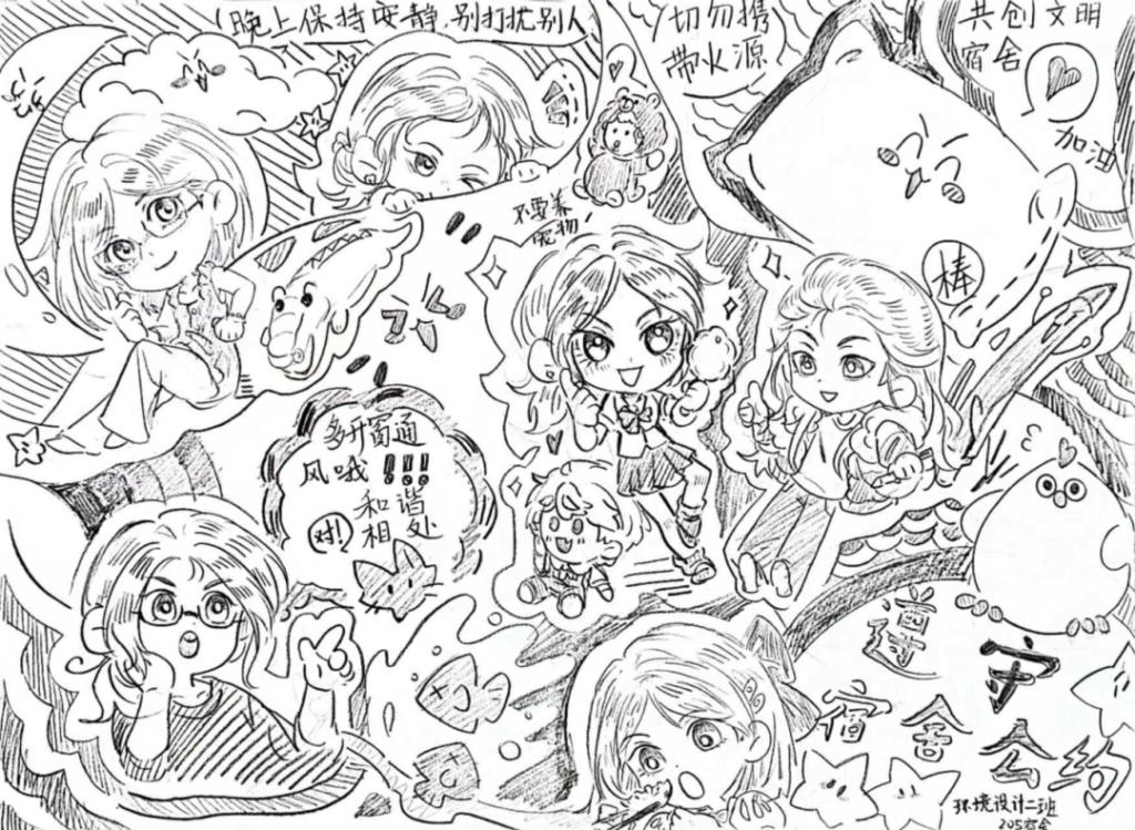为营造文明有序、互助友爱的寝室生活环境,发挥学生的创造力,增强学生团结互助的精神。艺术设计学院特此开展了 “共约馨居,共建规范”寝室公约设计活动,让我们一起来看看本次活动的优秀作品吧。