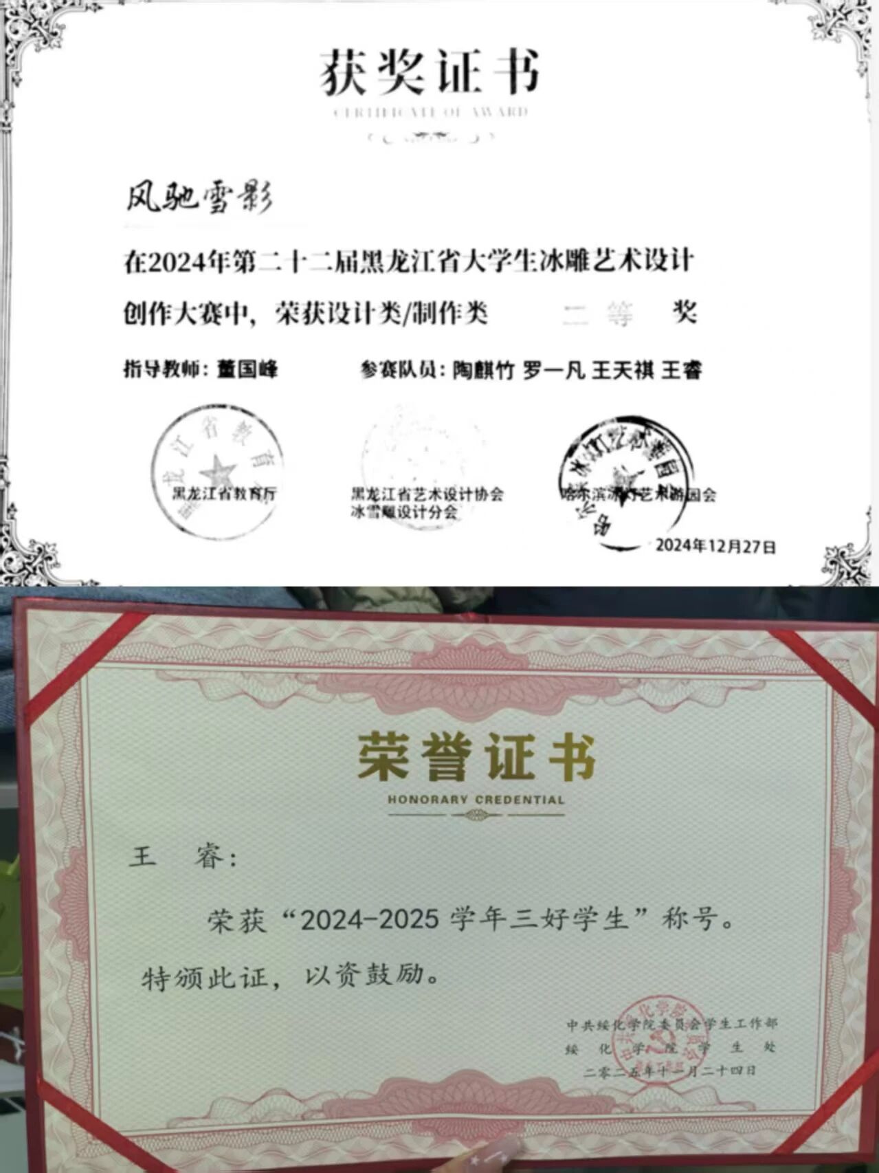 荣获二十二届黑龙江省大学生冰雕艺术设计创作大赛二等奖;