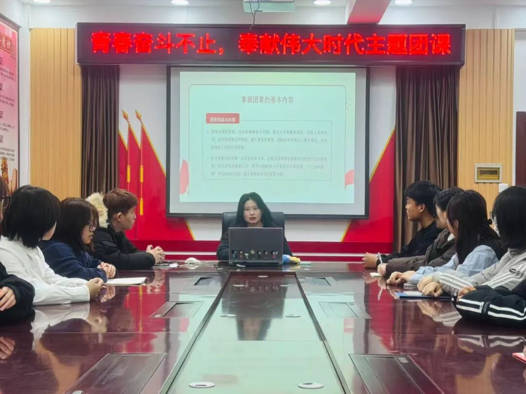 为引导青年厚植理想信念、明晰责任使命,11月19日下午3时,艺术设计学院在游艺楼405开展“青春奋斗不止,奉献伟大时代”入团积极分子团课培训(第二讲)。本次活动由2024级辅导员姜婷婷主持,2025年下半年入团积极分子参