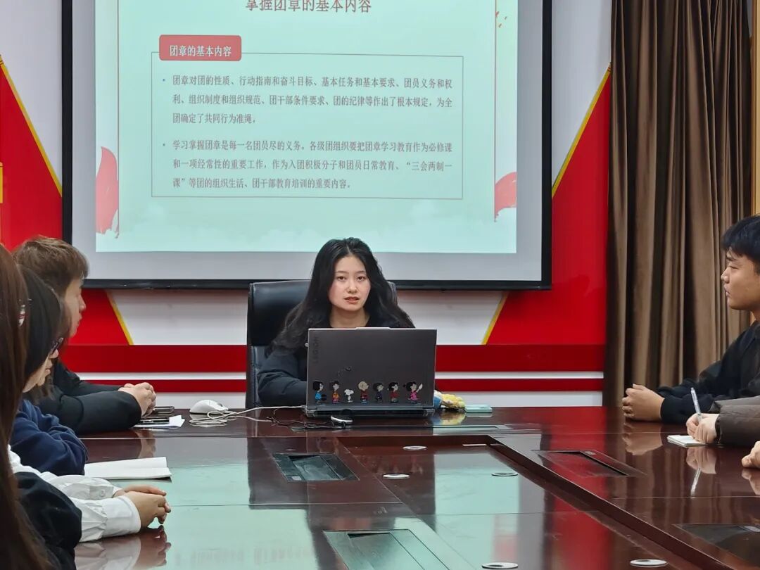 活动伊始,姜婷婷老师围绕“掌握团章的基本内容”展开分享,明确团章是团的根本遵循——它界定了团的性质、行动指南,明确了团员的义务与权利、组织制度等核心内容,更将“学习团章”定位为每一名团员的义务。随后,姜婷婷老师还指出让同学们积极落实工作,她鼓励同学们以团章为镜,时常对照自省,坚定理想信念。