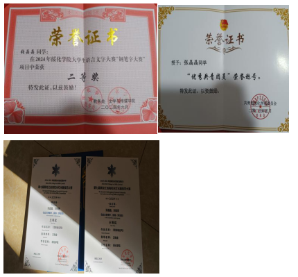 绥化学院大学生语言文字能力大赛二等奖及冰彩画优秀奖;