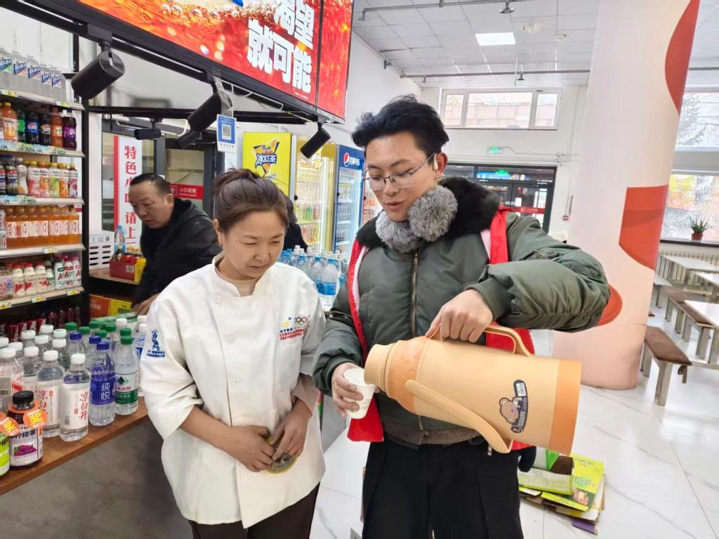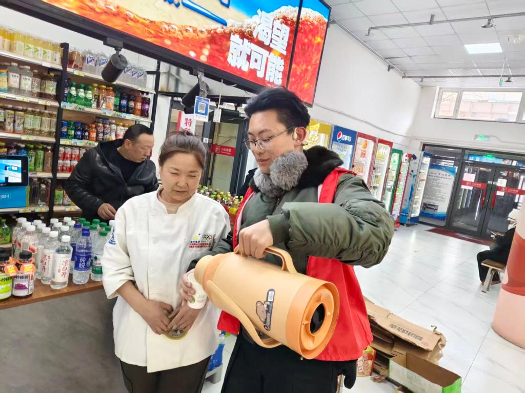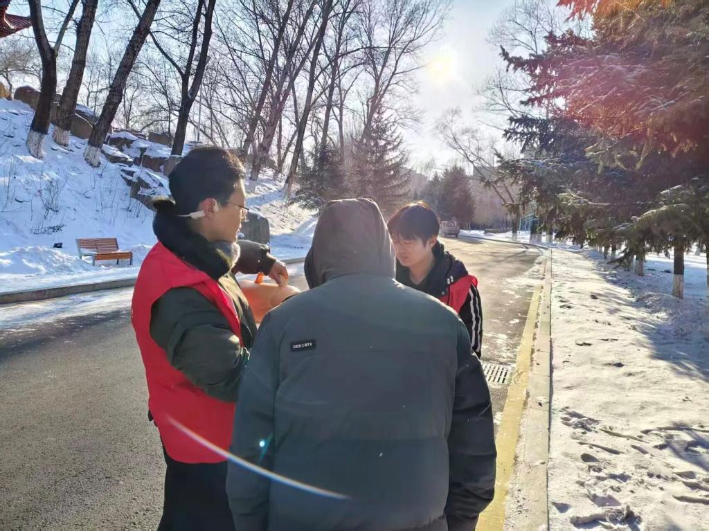 活动伊始,志愿者们有序奔赴环卫工人日常作业路段,化身暖心服务者投入到志愿服务中,同学们第一时间为环卫工人递上热水,送上贴心关怀,用真诚的举动向辛勤付出的环卫工人们致以敬意。