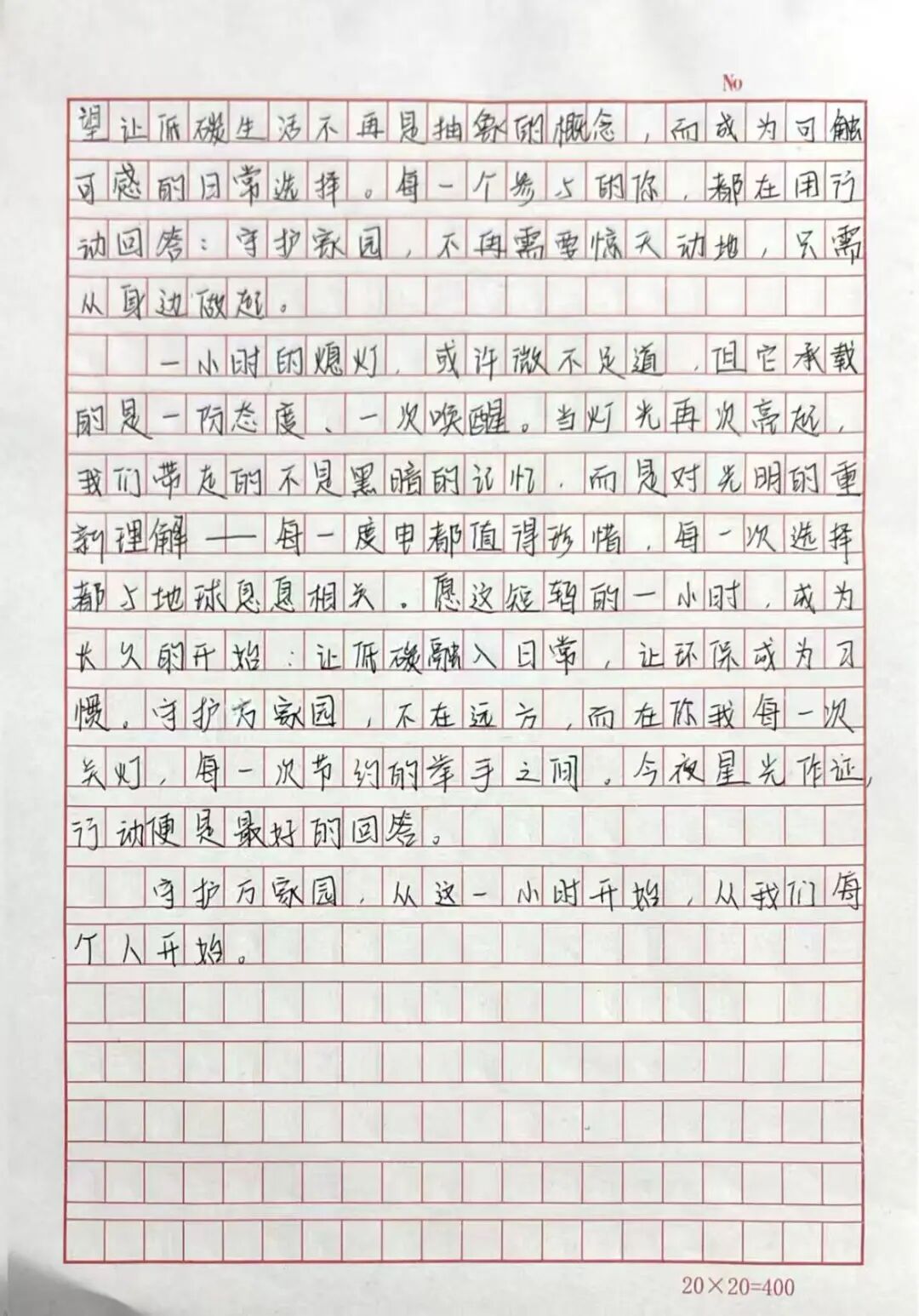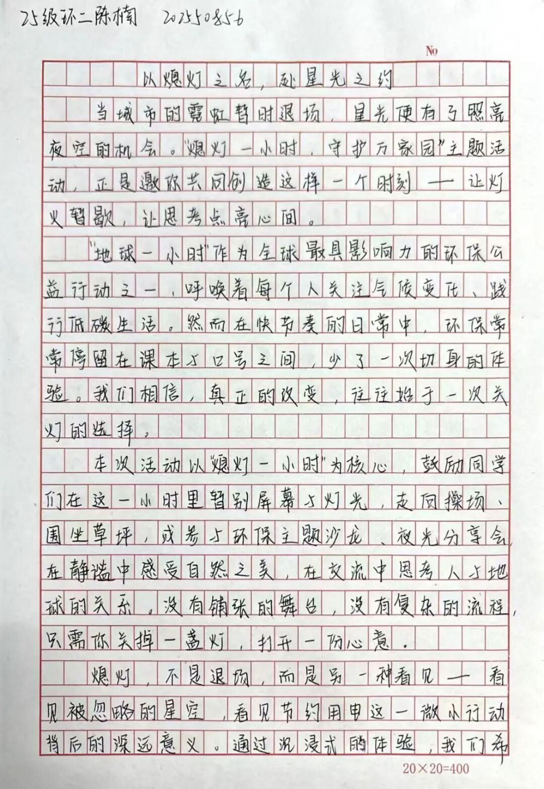 “地球一小时”是全球极具影响力的环保公益活动,旨在呼吁公众关注气候变化、践行低碳生活。为响应世界自然基金会的号召,将环保理念融入校园生活,艺术设计学院特举办以“熄灯一小时,守护万家园”为核心的主题活动,以下是活动优秀作品。